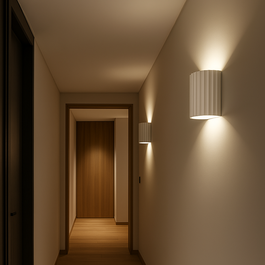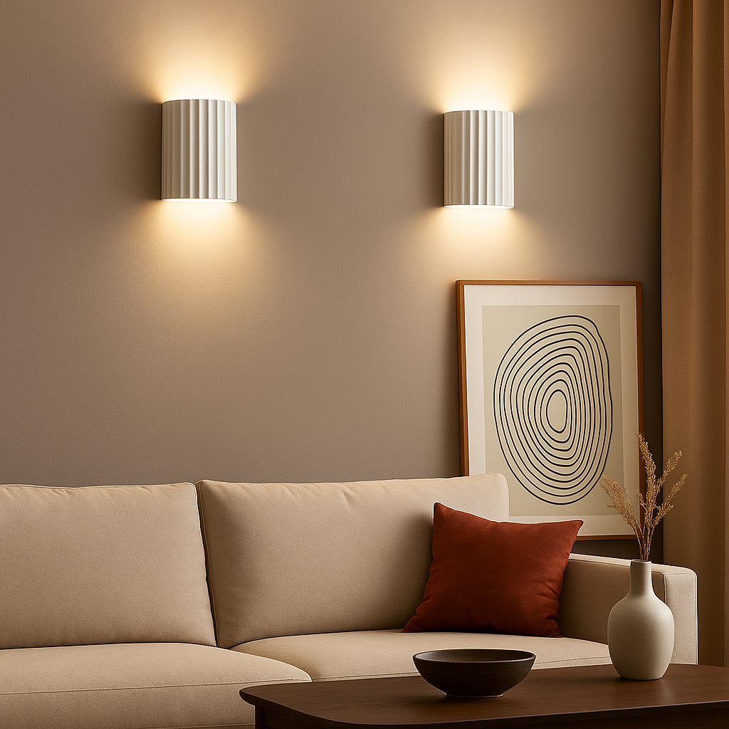 Son relief vertical diffuse une lumière douce vers le haut et vers le bas, créant une ambiance chaleureuse et élégante dans une chambre, un salon, un couloir ou une entrée.
